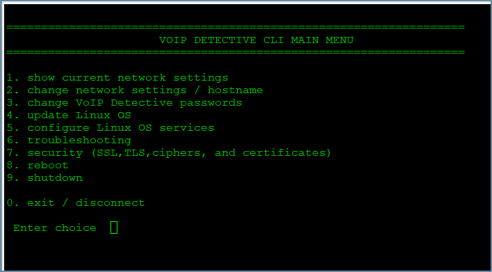 9. If you plan on accessing VoIP Detective via a DNS address (instead of an IP address) then set a hostname in the VoIP Detective CLI. Please see this article.