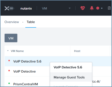 1. In AHV, go to your VM list, and right click on the VoIP Detective VM.